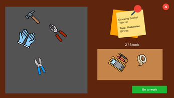Gameplay: MR. FIX-IT is a simulation and puzzle game where you play as a freelance electrician building your career from small repair jobs to large electrical systems. You start with simple tasks like replacing light bulbs, fixing outlets, and troubleshooting broken wiring. As you earn money and gain experience, you take on more complex jobs in bigger houses, luxury villas, and buildings with complicated electrical systems. Each job follows a simple process: check your computer for available work, read the problem description, prepare the tools you need, travel to the location, find the faulty part, and complete repair minigames to fix it. Finish jobs to earn money, upgrade your equipment, and unlock harder contracts. From a small handyman doing basic fixes, you gradually become a skilled electrician capable of handling complex electrical systems.